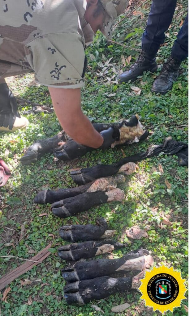 Pedazos de cuero bovino, patas de terneros y cortes de carne con restos compatibles con la faena