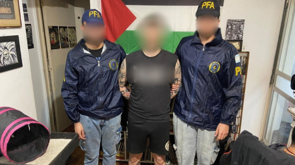 Según la pesquisa, el sospechoso —argentino de 37 años— operaba desde ese domicilio y participaba activamente en movilizaciones junto a sectores de izquierda.