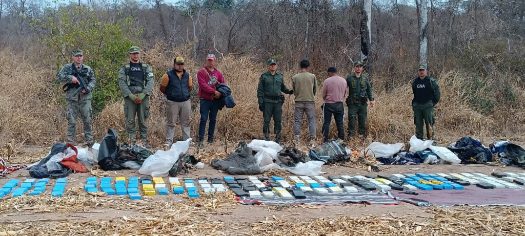 Los gendarmes lograron capturar a dos individuos, quienes llevaban en sus mochilas paquetes rectangulares que, tras realizar la prueba de Narcotest, resultaron ser cocaína con un peso total de 202 kilos 910 gramos. Posteriormente, la investigación llevó a la identificación de una camioneta en la que se trasladaban siete personas más, quienes fueron arrestadas por su implicación en el hecho.
