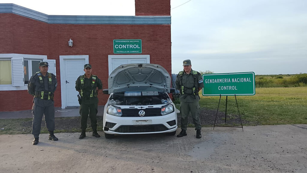 Al revisar el semirremolque, los efectivos observaron que, además de maquinaria rural y neumáticos industriales, el conductor trasladaba un automóvil que llamó la atención de los uniformados. Al consultar los antecedentes, se confirmó que el vehículo tenía un pedido de secuestro activo desde 2022 en el partido de La Matanza, Buenos Aires.