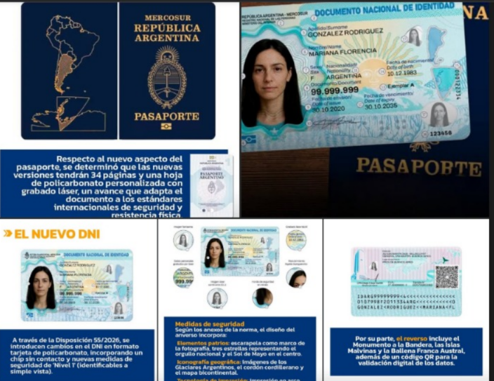 Desde el 1 de febrero entran en vigencia los nuevos diseños del Documento Nacional de Identidad (DNI) y del pasaporte argentino. La actualización fue dispuesta por el Gobierno nacional con el objetivo de adecuar ambos documentos a los estándares internacionales de seguridad y tecnología.