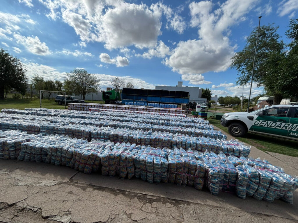 Durante la inspección, los gendarmes detectaron productos electrónicos, alimentos, artículos de limpieza y textiles de origen extranjero sin la documentación correspondiente. Además, se hallaron 20 bolsones con hojas de coca en estado natural, con un peso total de 456 kilos.