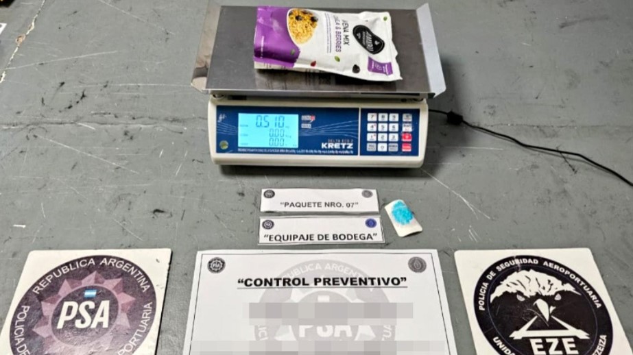La pasajera fue identificada tras mostrar respuestas contradictorias en la entrevista previa al embarque. El personal de la PSA, junto a agentes de ARCA, realizó una inspección detallada y halló en su equipaje 20 paquetes de granola, de los cuales 18 contenían cocaína. El pesaje totalizó 9.224 gramos.