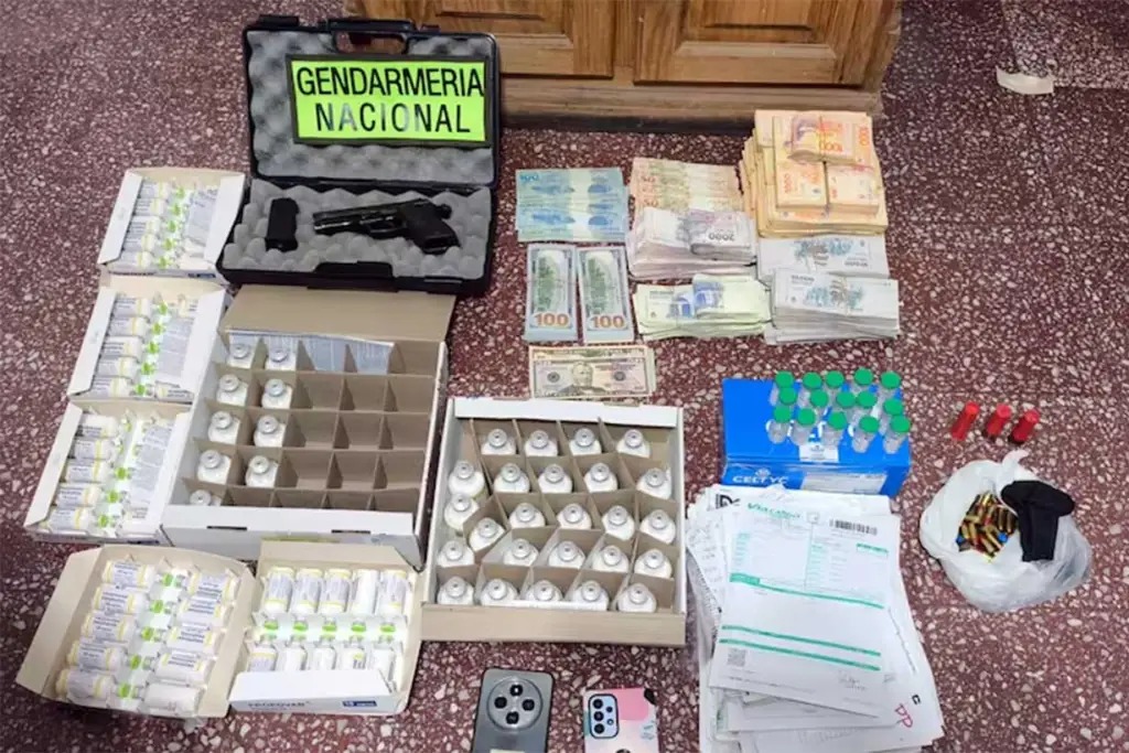 El procedimiento comenzó con la detención de un hombre en la terminal de ómnibus de Puerto Madryn, cuando intentaba retirar el paquete que contenía ampollas de fentanilo y remifentanilo. A partir de allí, la investigación avanzó hasta Entre Ríos, donde Gendarmería realizó allanamientos en domicilios vinculados al remitente.