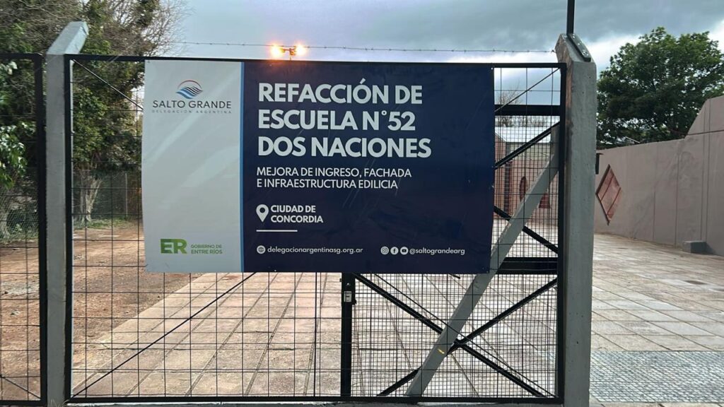 La Delegación Argentina ante la Comisión Técnica Mixta de Salto Grande concluyó los trabajos de refacción y puesta en valor en la Escuela Nº 52 Dos Naciones de Concordia, en el marco de las acciones orientadas a fortalecer la infraestructura educativa en la provincia.