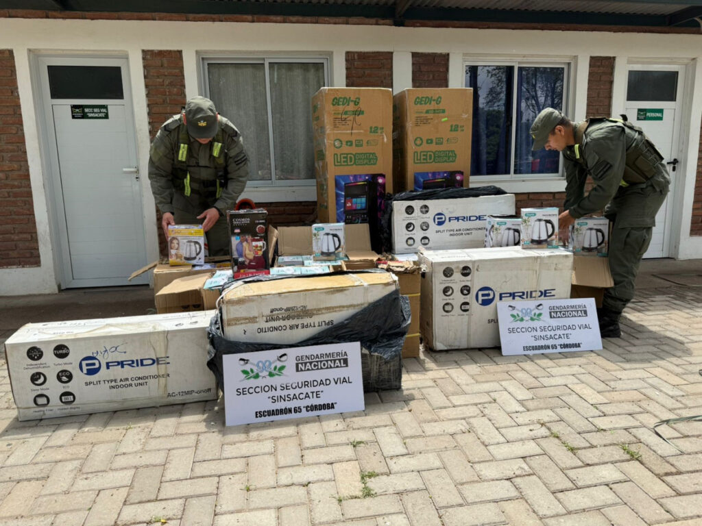 En Córdoba, los gendarmes del Escuadrón 65 realizaron controles sobre colectivos de larga distancia y vehículos particulares, donde hallaron pavas eléctricas, parlantes, aires acondicionados, neumáticos y cigarrillos sin respaldo legal. El valor total de lo secuestrado en esa provincia supera los 16 millones de pesos.