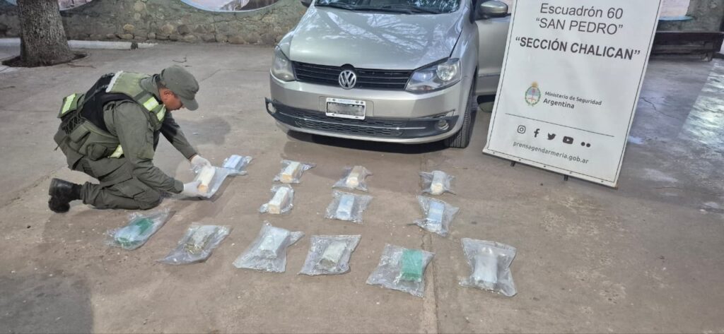 El hallazgo se produjo cuando el can antinarcóticos “Lev” marcó la posible presencia de drogas dentro del vehículo. Al realizar una inspección detallada, los gendarmes extrajeron 14 paquetes que contenían 8,6 kilos de cocaína y 6,2 kilos de marihuana.