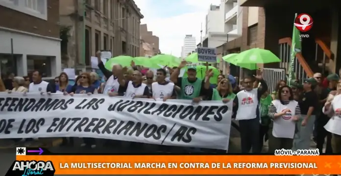 La Intersindical en Defensa de la Caja de Jubilaciones, integrada por gremios docentes y trabajadores estatales, se movilizó este jueves en Paraná para expresar su oposición a la iniciativa previsional. La concentración comenzó a las 10 en Plaza de Mayo, desde donde las columnas marcharon hacia la Casa de Gobierno, donde se dio lectura a un documento consensuado.