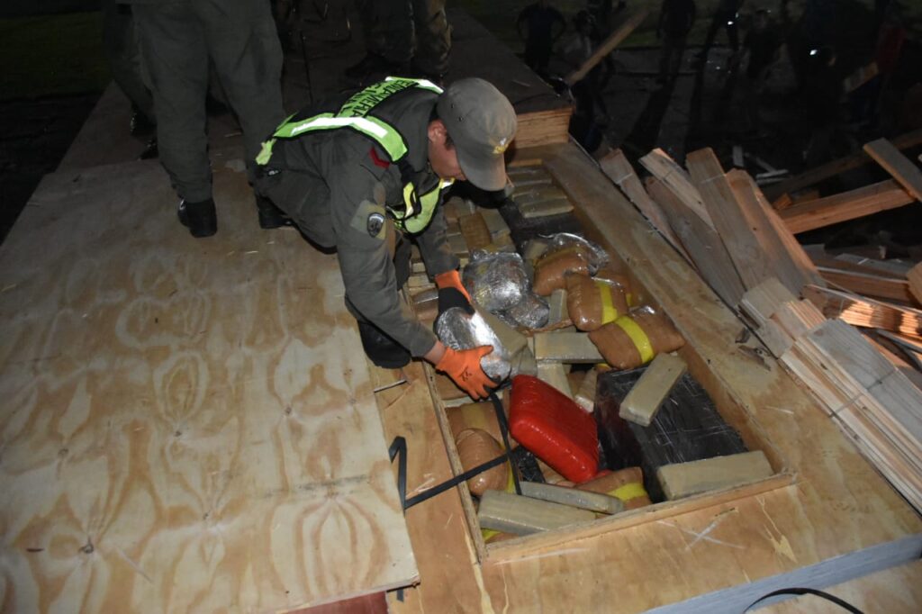 Ante esta alerta, el vehículo fue trasladado al Complejo Terminal de Cargas, donde un escaneo reveló la existencia de cuerpos extraños entre el cargamento. Al revisar el semirremolque, los efectivos hallaron un doble fondo construido dentro de las placas de madera, donde se ocultaban 3.695 paquetes envueltos en cinta de embalar.