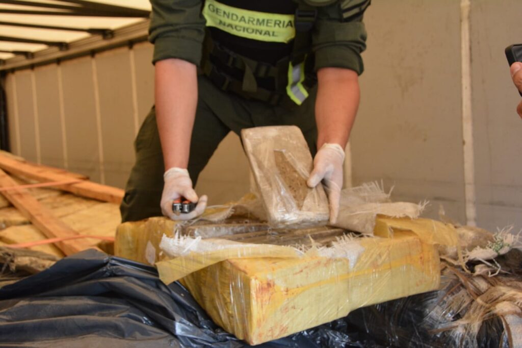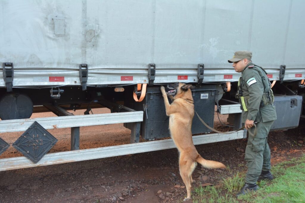 Durante la inspección, los agentes detectaron que la documentación presentada por el conductor contenía información que no coincidía con los datos del vehículo. Además, el can detector de narcóticos “Loana” señaló el acoplado, alertando a los gendarmes sobre la posible presencia de drogas. Ante esta situación, y debido a la magnitud del procedimiento, el Juzgado Federal de Eldorado autorizó el traslado del vehículo al polideportivo de la zona para un conteo más detallado.