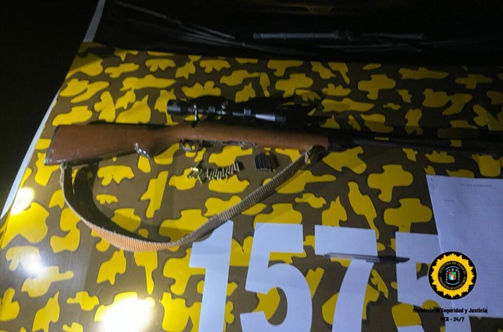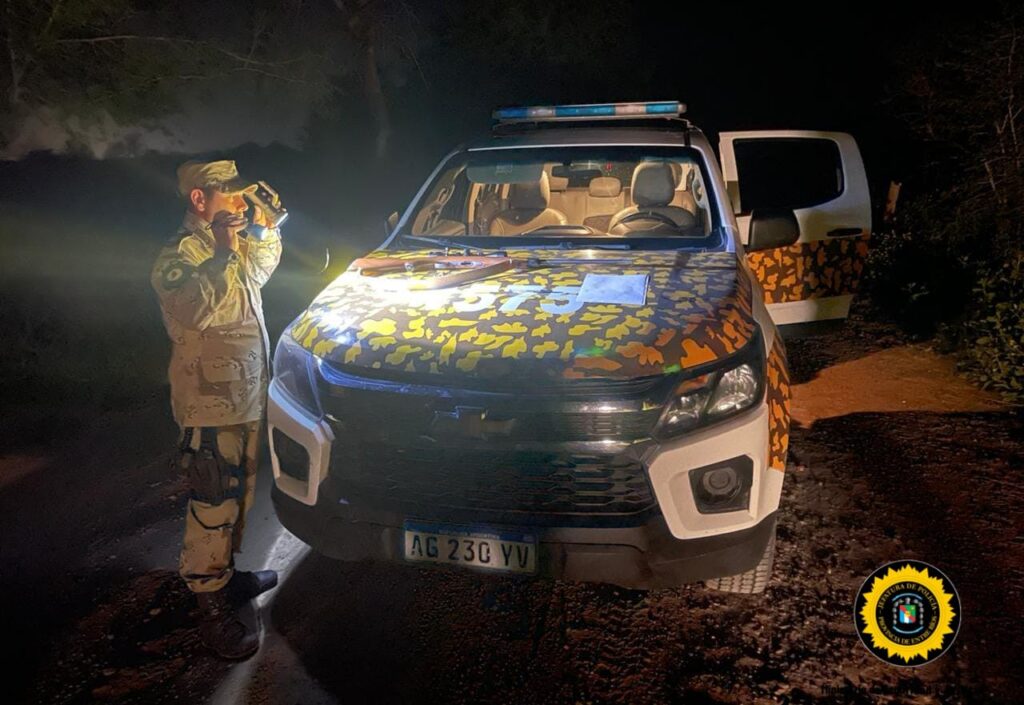 Pocos minutos después, los uniformados observaron salir del campo a dos individuos, quienes fueron inmediatamente identificados. Ambos son originarios de Gualeguaychú. Durante la revisión, se constató que uno de ellos portaba una carabina .22 que carecía de la documentación necesaria (C.L.U., carnet de tenencia). En consecuencia, el fiscal de turno, Dr. Martín Gil, ordenó el secuestro de una carabina calibre .22 y veinte cartuchos del mismo calibre por el delito de tenencia ilegal de arma de fuego. Los individuos quedaron supeditados a la causa judicial.