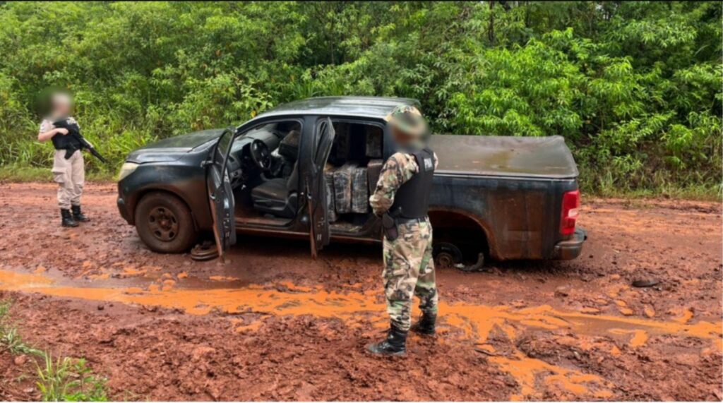 El procedimiento se llevó a cabo en la ciudad de Eldorado, a la altura del kilómetro 1.818 del río Paraná, en la zona conocida como Puerto Tuyaí. Allí, efectivos que realizaban tareas de vigilancia detectaron una camioneta tipo pick up sobre la costa, donde varios individuos cargaban bultos.