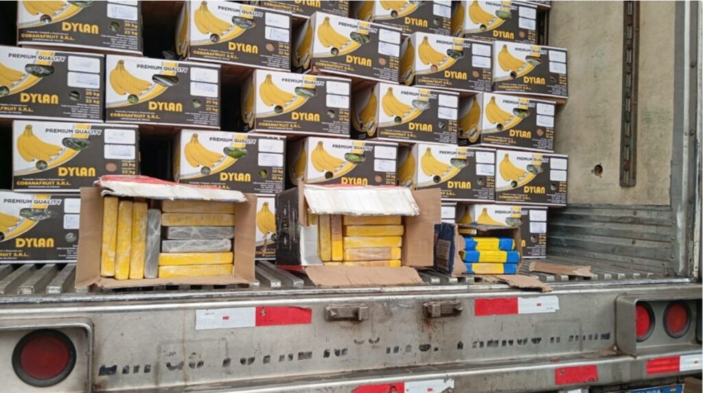 El escaneo permitió identificar tres cajas ocultas entre una carga de aproximadamente 22.000 kilos de bananas. Al abrirlas, los gendarmes hallaron 48 paquetes rectangulares que contenían un total de 50 kilos con 46 gramos de cocaína.