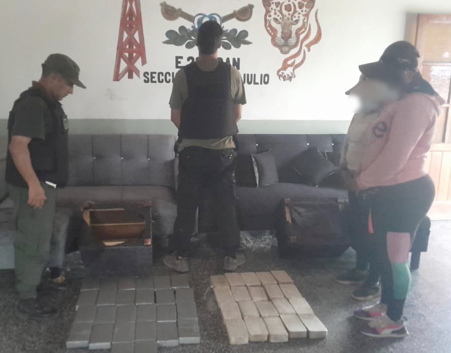 Ante esta situación, y con intervención de la Auxiliar Fiscal de la Sede Fiscal Descentralizada de Orán, los gendarmes realizaron una inspección más minuciosa. Al romper el tapizado y retirar el relleno de los sillones, encontraron 46 ladrillos con una sustancia blanquecina.