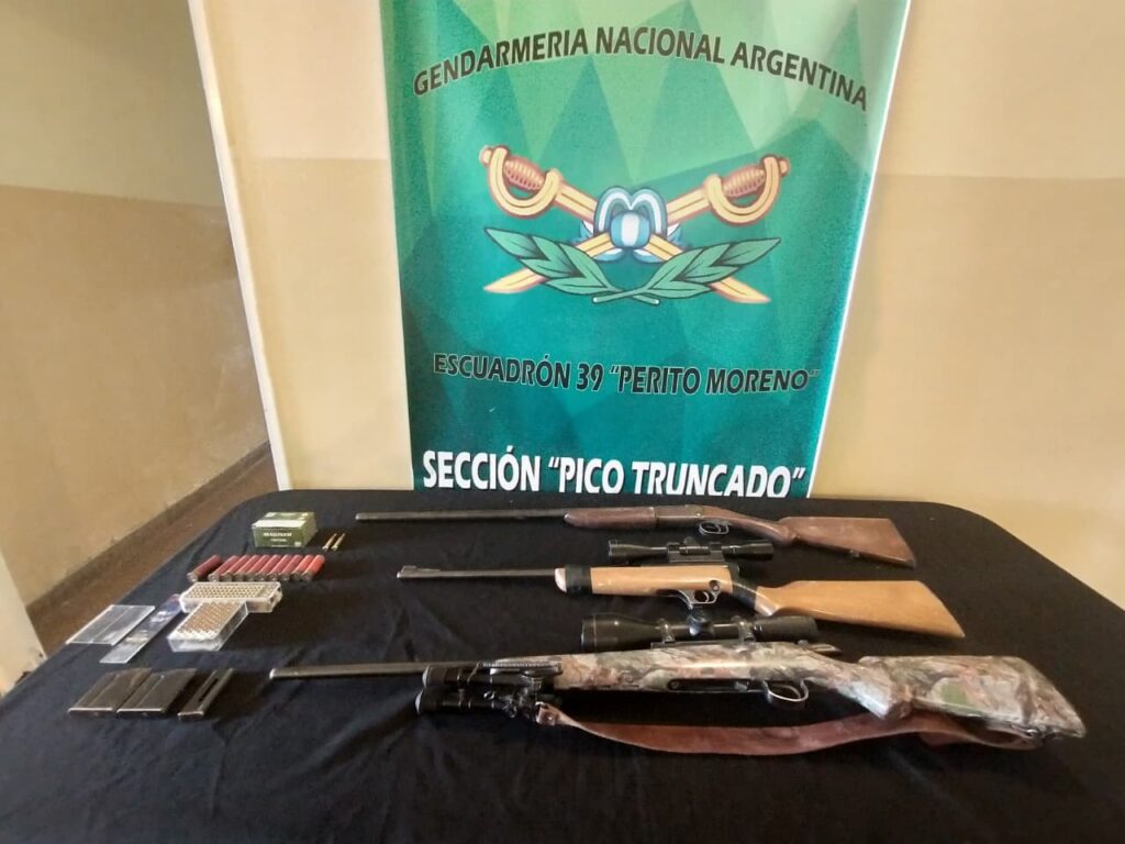 Intervino el Juzgado en lo Criminal y Correccional de Pico Truncado junto a Bromatología Municipal, disponiendo el secuestro de las armas, las municiones y la carne por infracción a la normativa vigente sobre fauna silvestre y tenencia de armas.
