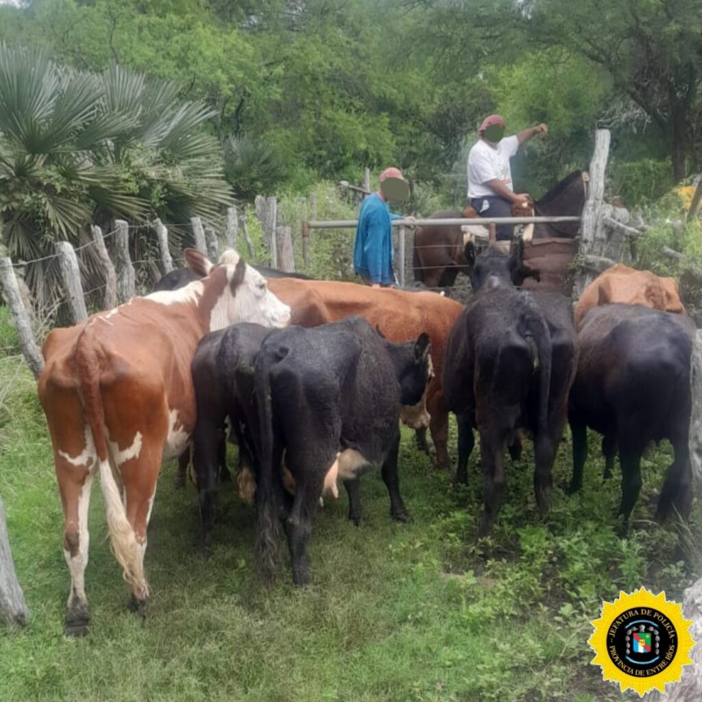 Además, se concretaron dos allanamientos en distintos puntos de la ciudad y en la zona rural, donde se recuperaron nueve animales vacunos pertenecientes al productor damnificado y un carrilín tipo pico de cigüeña presuntamente utilizado en el robo.