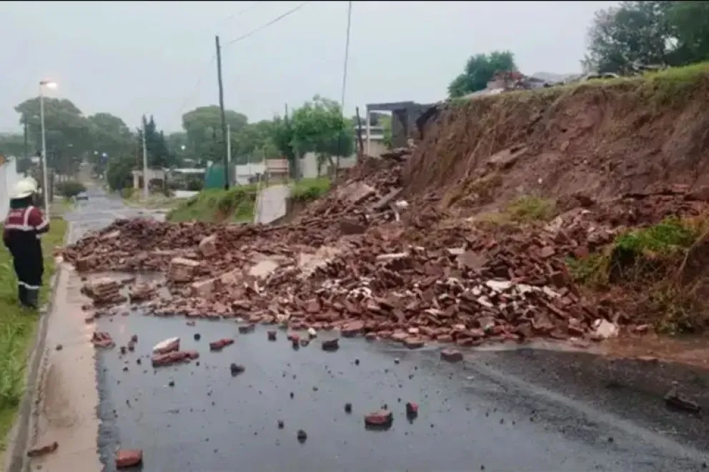Las intensas lluvias que afectaron a Diamante durante la madrugada provocaron un deslizamiento de terreno y el hundimiento de parte de la calzada en calle Moreno, en el tramo comprendido entre Brown y Alem.